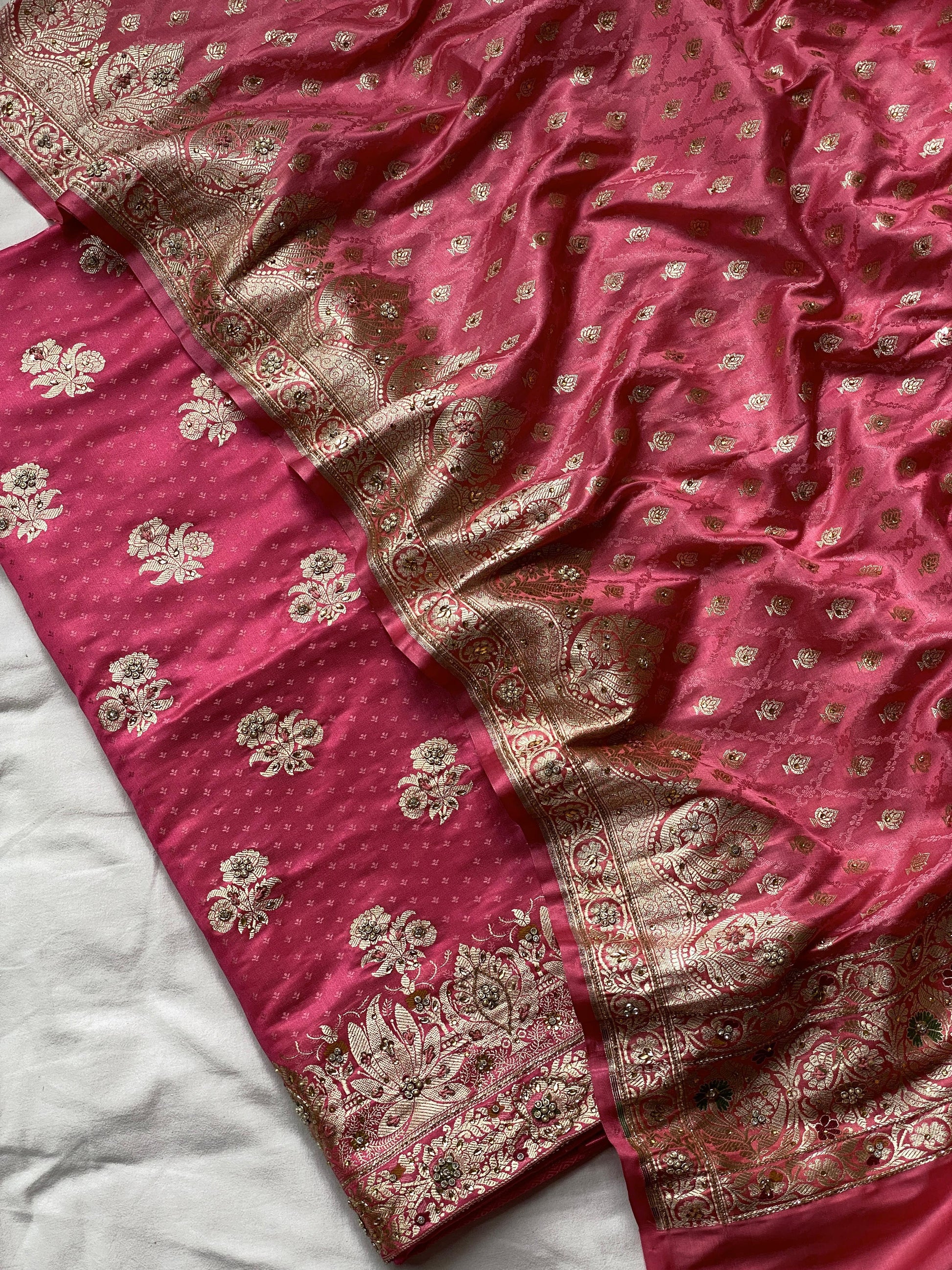 Fabric - Pure Handloom Banarasi Katan Satin Silk Handwork Suit